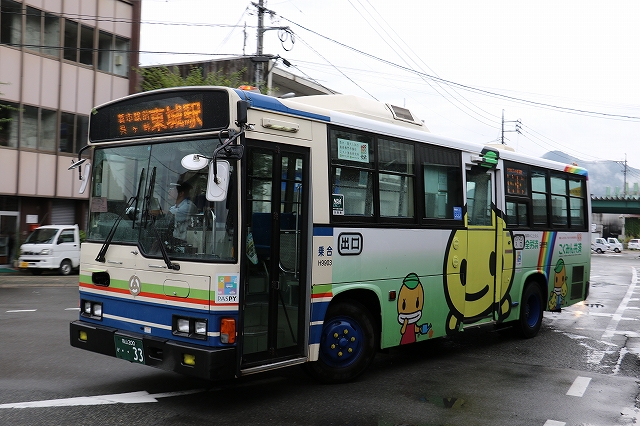 写真ありませんが東城市街を循環するバスが走ってましたが祝日なのか乗客は誰も居らず。