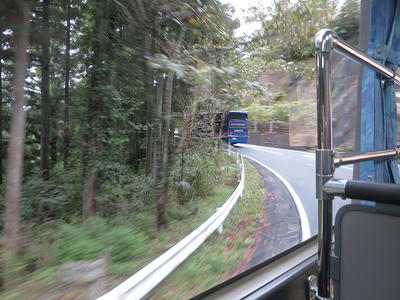 高野龍神スカイラインを走行中。慎重なハンドルさばきでした。